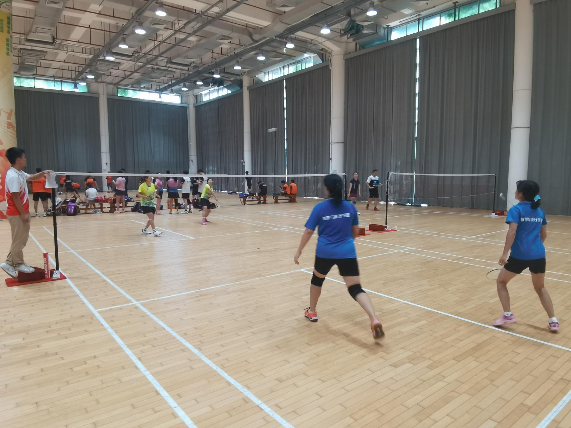 2021年9月25日上午9:30,由深圳大学校工会主办,深圳大学体育部、深圳大学后勤保障部、丽湖校区管理办公室等单位协办的“杭州银行杯”深圳大学2021年教职工羽毛球联赛A组第三轮比赛(新学期首场比赛)在粤海校区运动广场羽毛球馆正式开赛。
