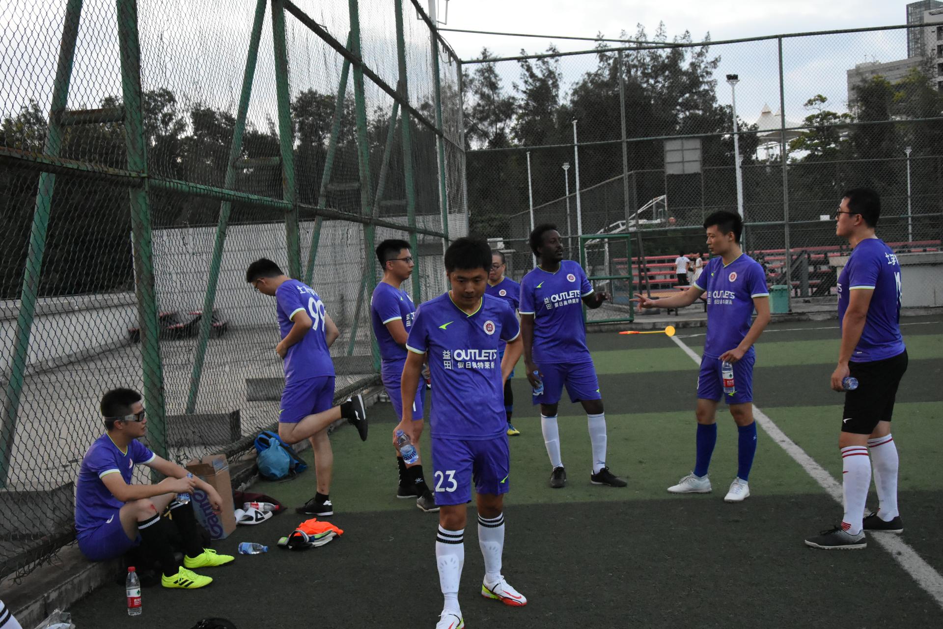 上半场战罢,经过各位老师们讨论为挽回颓势,让谭毅老师出任守门员,Eskinder D.老师出任前锋冲阵。此番人员调整在下半场一开场便取得成效,我方利用防守反击打穿了对面后防线,陈轮老师射门造成对方禁区混乱,谭明务老师在乱战中抓住机会射门,但最后被门柱拒之门外,遗憾错过本场比赛最佳机会。在下半场18号费建波老师表现甚佳,分别于45分钟,51分钟在禁区高高跃起头球,但是仍然缺乏一定运气,一次头球稍微高出横梁,另一次被对方球员解围。