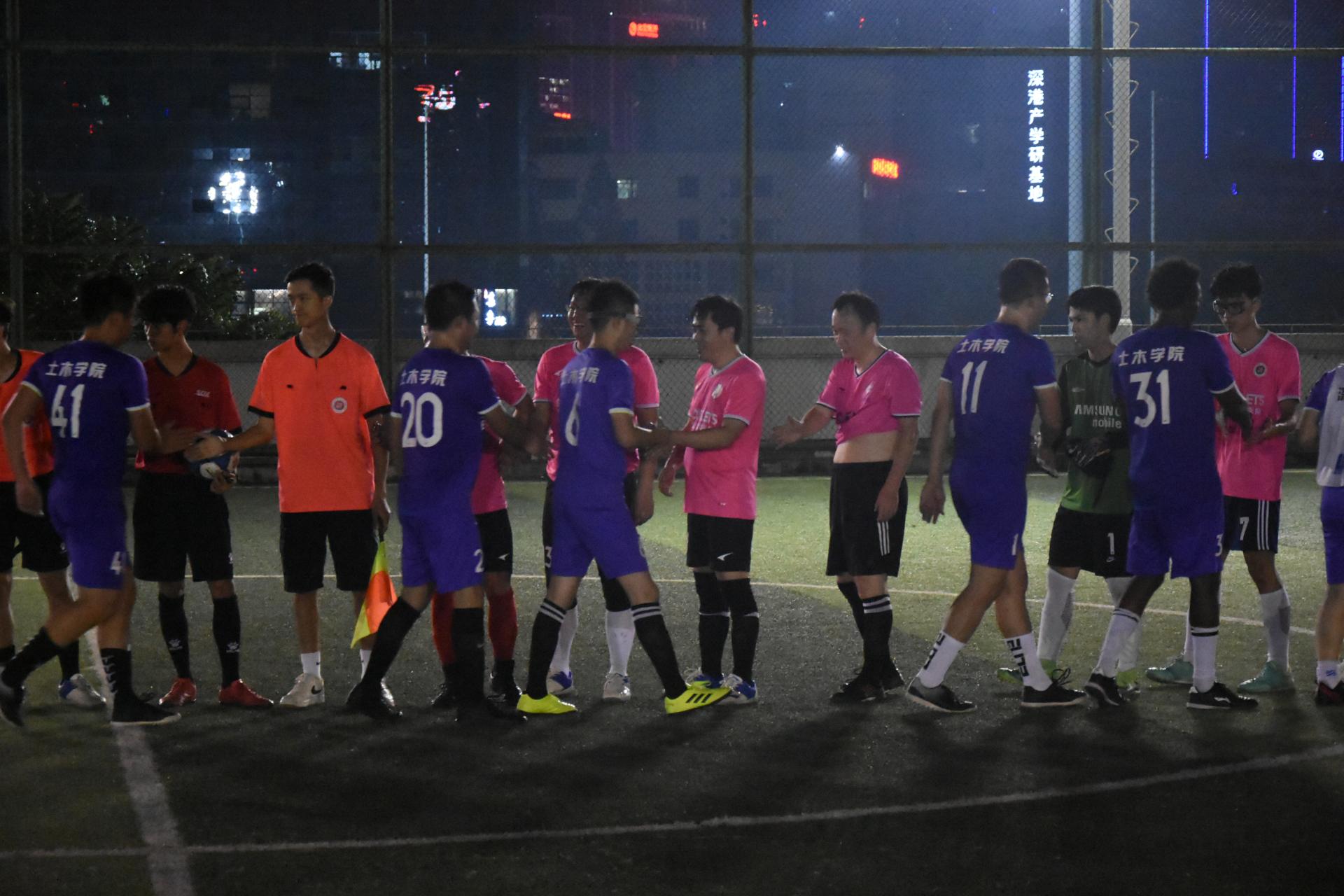 深圳大学“益田奥莱杯”2021年教职工足球联赛第14轮较量于2021年11月7日晚在粤海校区天台足球场正式开展,土木与交通工程学院教工足球队迎战传播学院教工足球队。