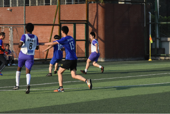 16:37分,裁判员吹响半场结束的哨声,双方队员回到场下休息。经过上半场的激烈角逐,土交院队员体力受到了很大的消耗。但大家依然团结一致,商讨战术。