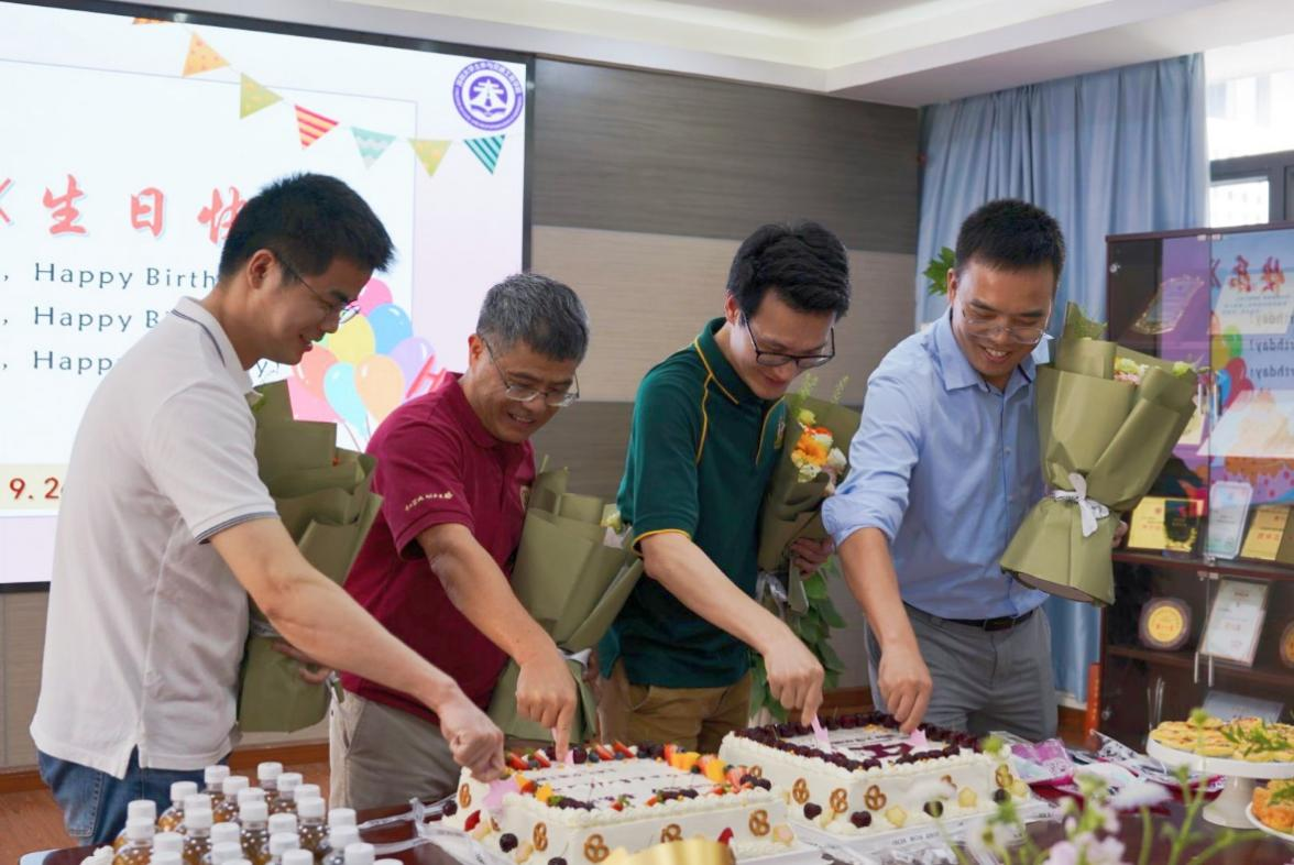 金秋九月是全院16位教职工的诞辰。当欢快的《生日快乐》音乐奏响,温馨祝福不绝于耳时,全场人将目光聚焦在“寿星”和巨大的美味蛋糕上。寿星们齐聚一堂,手捧鲜花,默默许下生日愿望,现场热烈氛围在蜡烛吹灭之际瞬间拉满,所有人都沉浸在此刻的甜蜜和温暖之中。