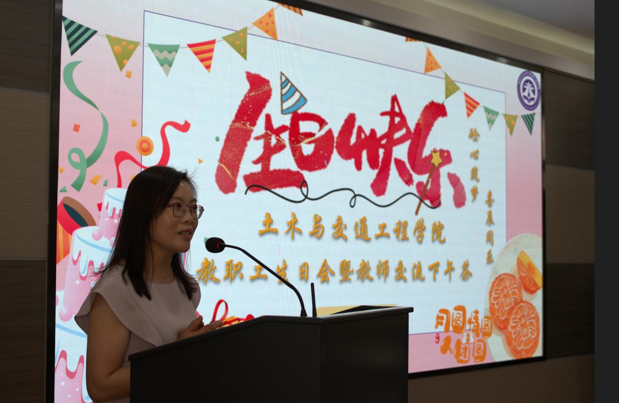 恰逢国庆节、中秋节及深圳大学四十周年校庆之际,为增强学院教职工的归属感、幸福感,激发工作积极性与创造性,进一步提升全院教职员工的凝聚力与向心力,9月26日下午,土木与交通工程学院工会举办了“砼心筑梦,喜辰同乐——土木与交通工程学院教职工生日会暨教师交流下午茶”活动。