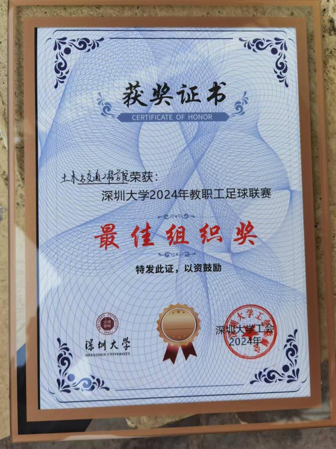 2024年深圳大学教职工足球联赛于近日圆满落幕,本次联赛不仅展现了教职工们的运动风采,还促进了各学院之间的交流与友谊。其中,深圳大学土木与交通工程学院(以下简称“土交学院”)教工足球队在本次联赛中表现出色,为学院赢得了荣誉。