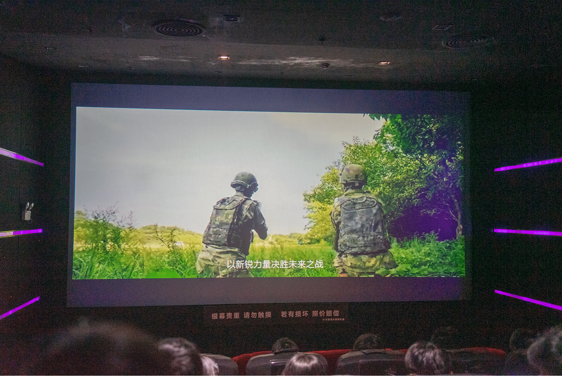 影片开始前,现场还播放了征兵宣传片,展现新时代中国军人的昂扬风采与国防建设的伟大成就,进一步激发青年学子的国防意识与家国情怀,鼓励大家积极投身强国强军的伟大实践。