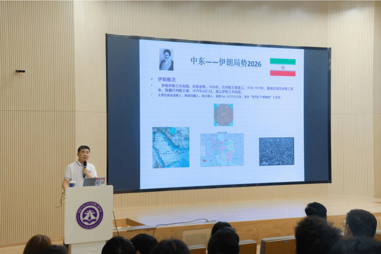 姜安教授紧密结合近期国际形势和师生关切热点问题,从地缘政治、能源争夺、军事科技及人道伦理等多维度展开深入剖析。他以中东局势新变化为切入点,分析了伊朗局势走向及其影响;聚焦俄乌冲突,研判关键地区态势与2026年战局发展趋势;在亚太局势方面,深入解读中日关系因涉台问题趋于紧张的新态势,重申中国台湾问题不容外来干涉;此外,还分析了中美贸易战及我国的反制措施,探讨中美关系当前面临的历史机遇和未来挑战。最后,姜教授提出两大安全方略:一是理性研判当前我国面临的内外环境,提出要保持战略定力,坚持党的领导,扎实推进经济发展、社会稳定与国家安全,全力推动落实“十五五”规划;二是要准确研判外部战略动向,警惕地区政治态势与外交风险。
