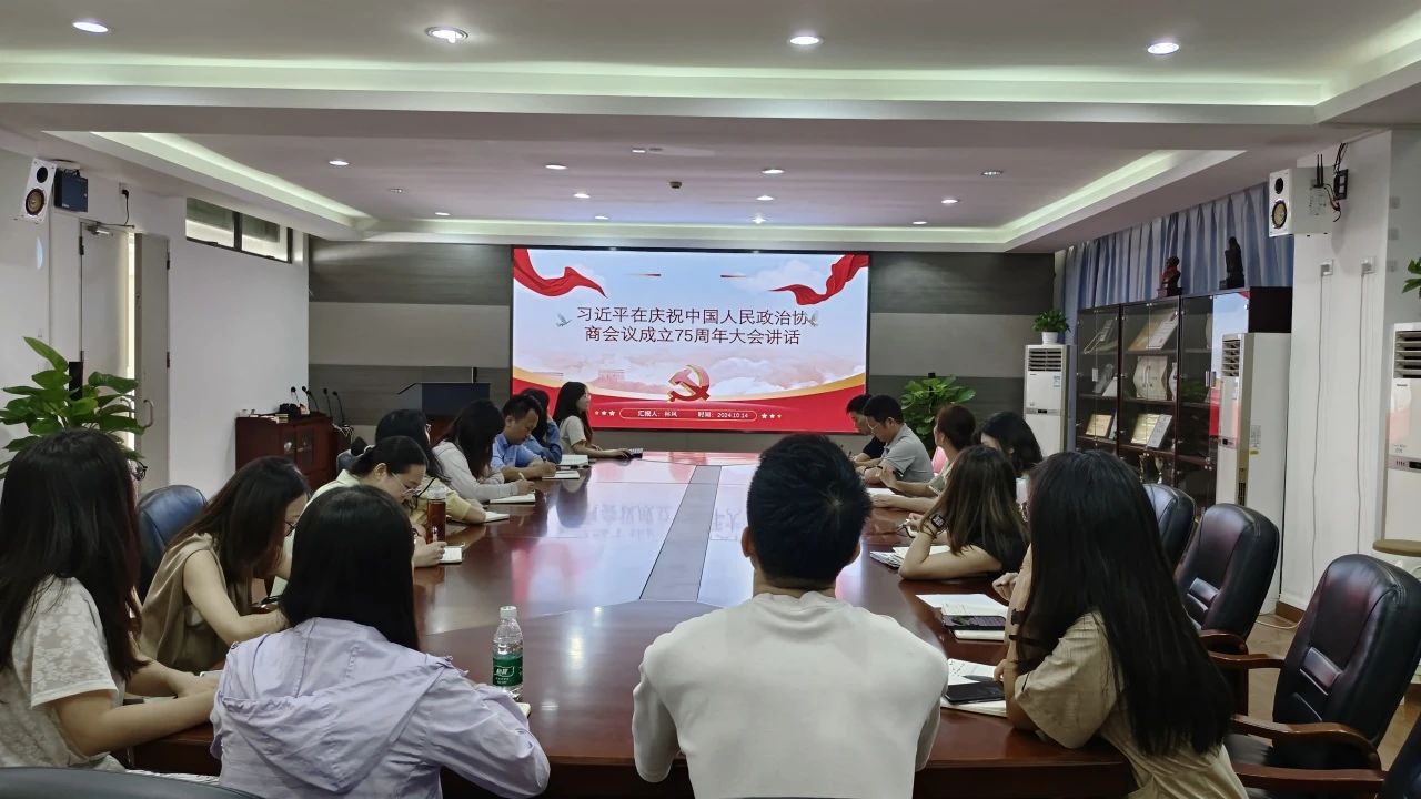 首先,由支部党员林凤领学习近平总书记在庆祝全国人民代表大会成立70周年大会上的讲话、在庆祝中国人民政治协商会议成立75周年大会上的讲话以及在全国民族团结进步表彰大会上的讲话。