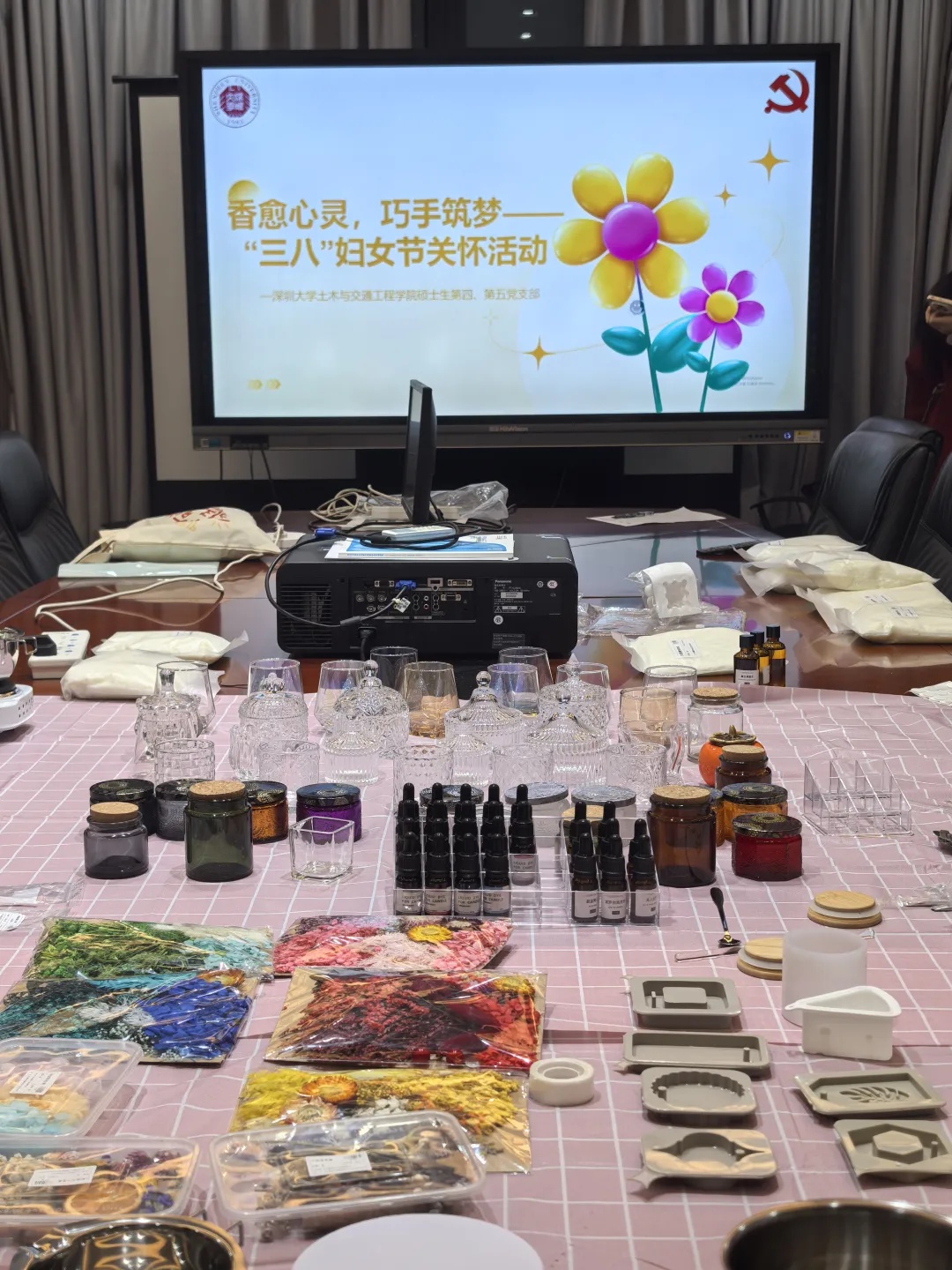 在第115个“三八”国际劳动妇女节到来之际,为弘扬女性自立自强的时代精神,增强党组织的凝聚力和向心力,促进女性师生的心理健康,深圳大学土木与交通工程学院硕士生第五党支部联合硕士生第四党支部精心策划并组织了一场别具一格的香薰制作活动。此次活动不仅是对节日精神的传承,更是党建工作与心理健康教育深度融合的生动实践。