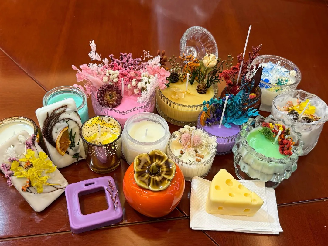 在制作过程中,大家分享彼此在学习、工作中的压力和调节方式,现场氛围温馨而轻松。每位同学都精心制作了属于自己的香薰,并在香薰上插满了色彩斑斓的花朵,既增添了美感,也象征着女性的坚韧与温柔。缤纷的花朵在灯光的映照下显得格外鲜艳,香气四溢,让整个活动现场弥漫着温暖与放松的氛围。